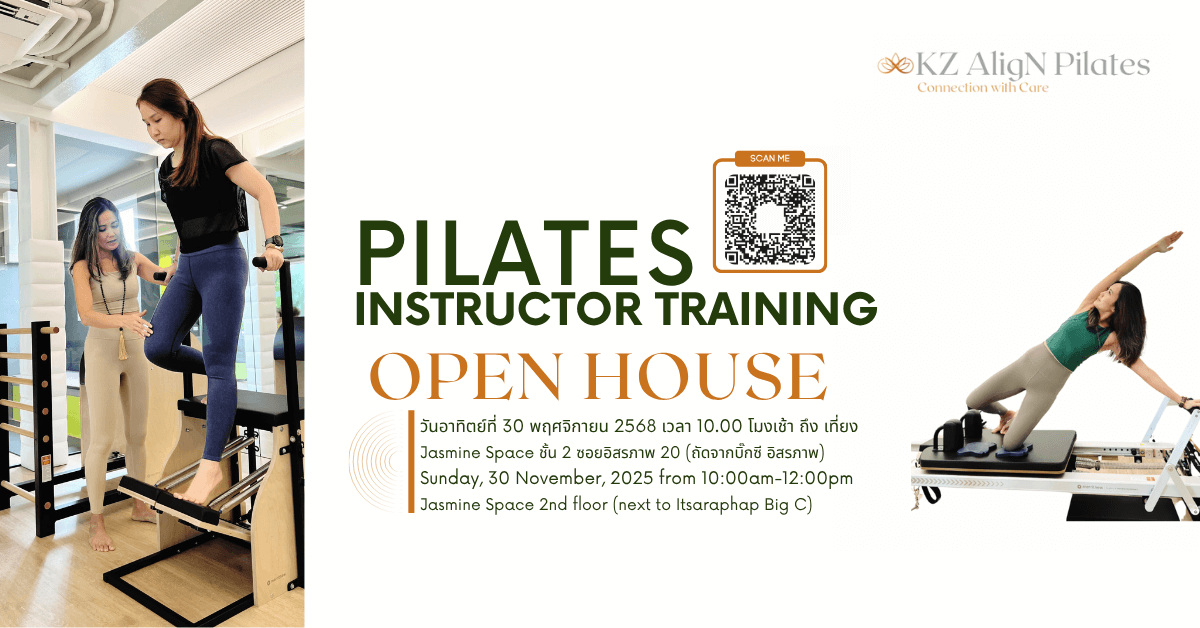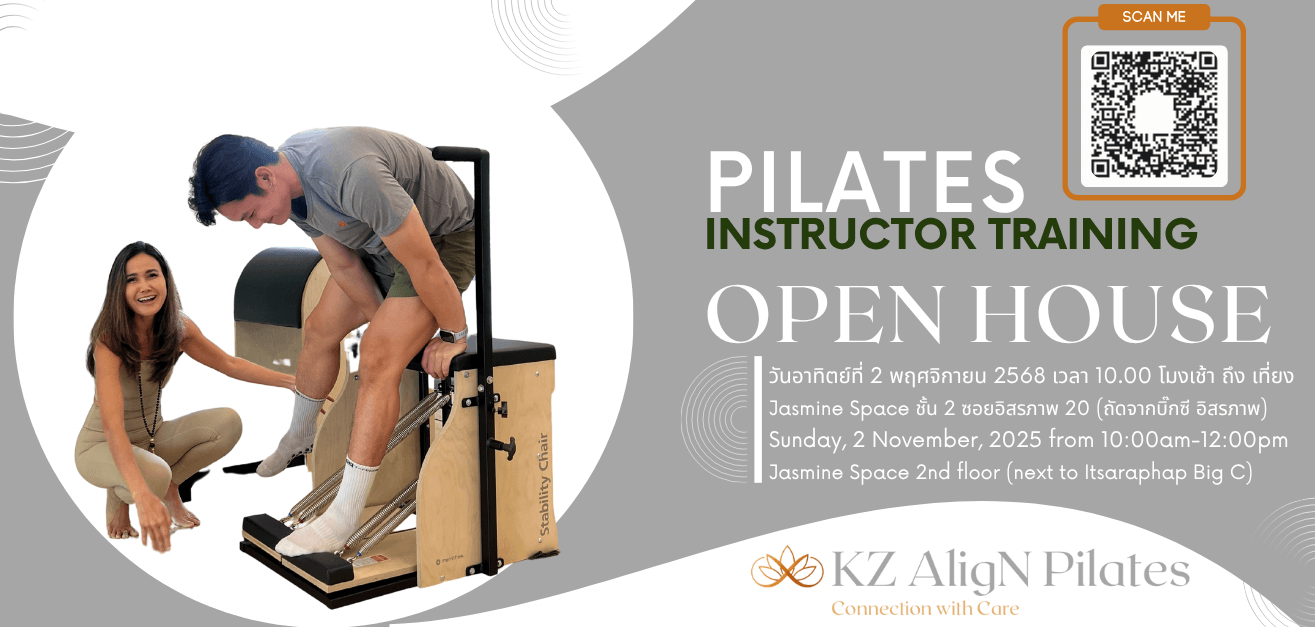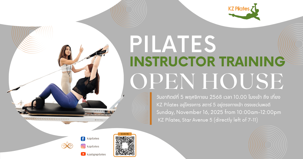 FeaturedKZ AligN Pilates Bangkok 2/3 Soi Itsaraphap 20 T. Wat Kanlaya, Thon Buri, Bangkok, Thailandเข้าร่วมงานวันเปิดบ้าน ก่อนที่การฝึกอบรมครูสอนพิลาทิสจะเริ่มขึ้นในเร็วๆนี้ ซึ่งตอนนี้เราได้เริ่มเปิดรับสมัครแล้ว งานนี้ไม่มีค่าใช้จ่าย คุณอยากรู้เกี่ยวกับการเป็นครูผู้สอนพิลาทิสไหม? คุณสามารถเข้าร่วมกิจกรรม Open House ที่ให้ความรู้กับเราที่สตูดิโอ KZ [...]